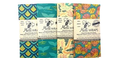Meli Wraps are Planet-Friendly Reusable Beeswax Wraps made with certified organic cotton, Hawaiian beeswax, tree resin and plant oils. The wraps can stick to just about anything and with a simple wash of cold water and soap they last about a year.
